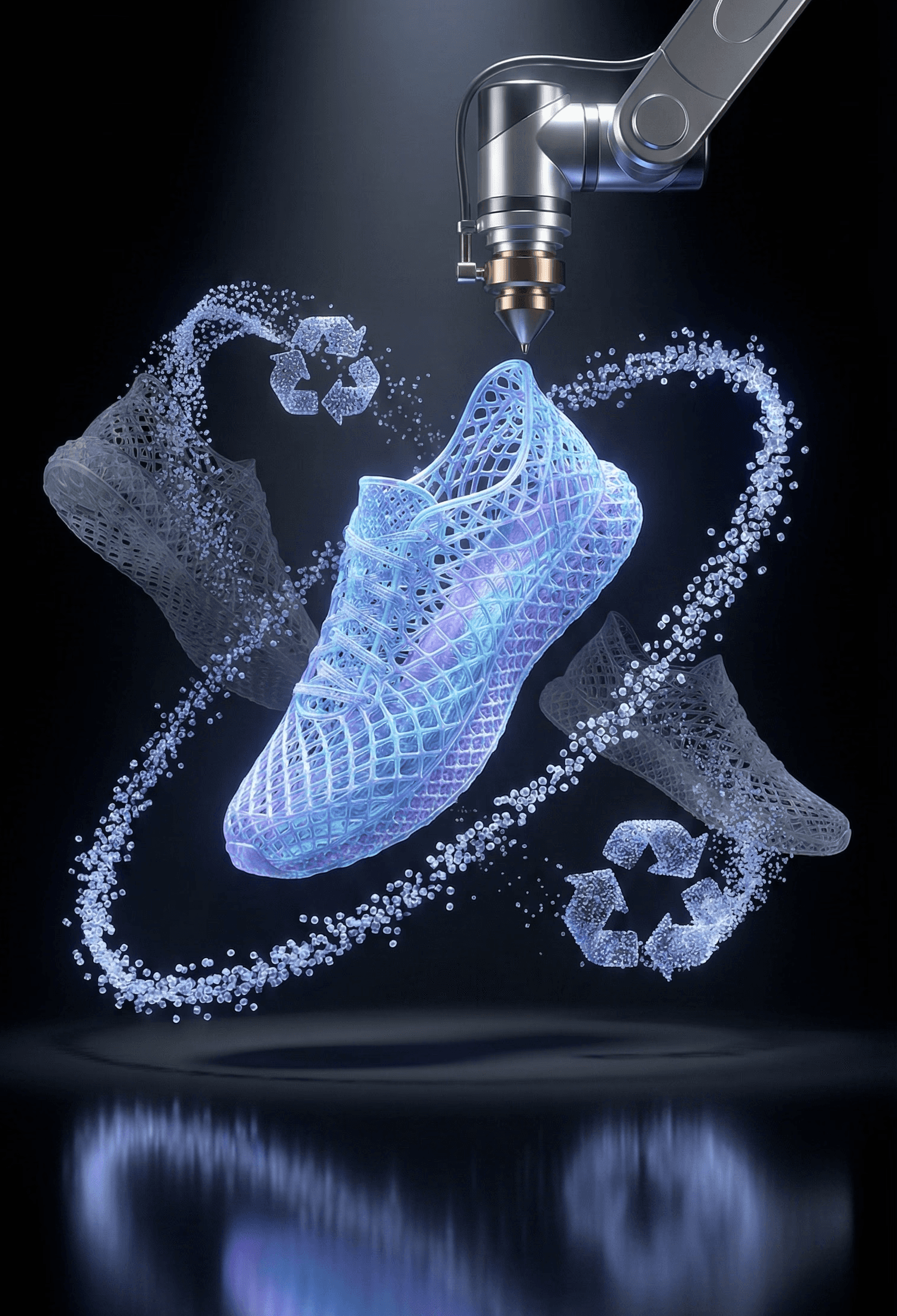 On the industry side, most shoes are made in bulk based on demand forecasts, not actual orders. Around 10% of shoes—about 2.4 billion pairs a year—are never worn, generating huge storage costs, unnecessary CO₂ emissions, and water waste for products that go straight to discount bins or destruction.