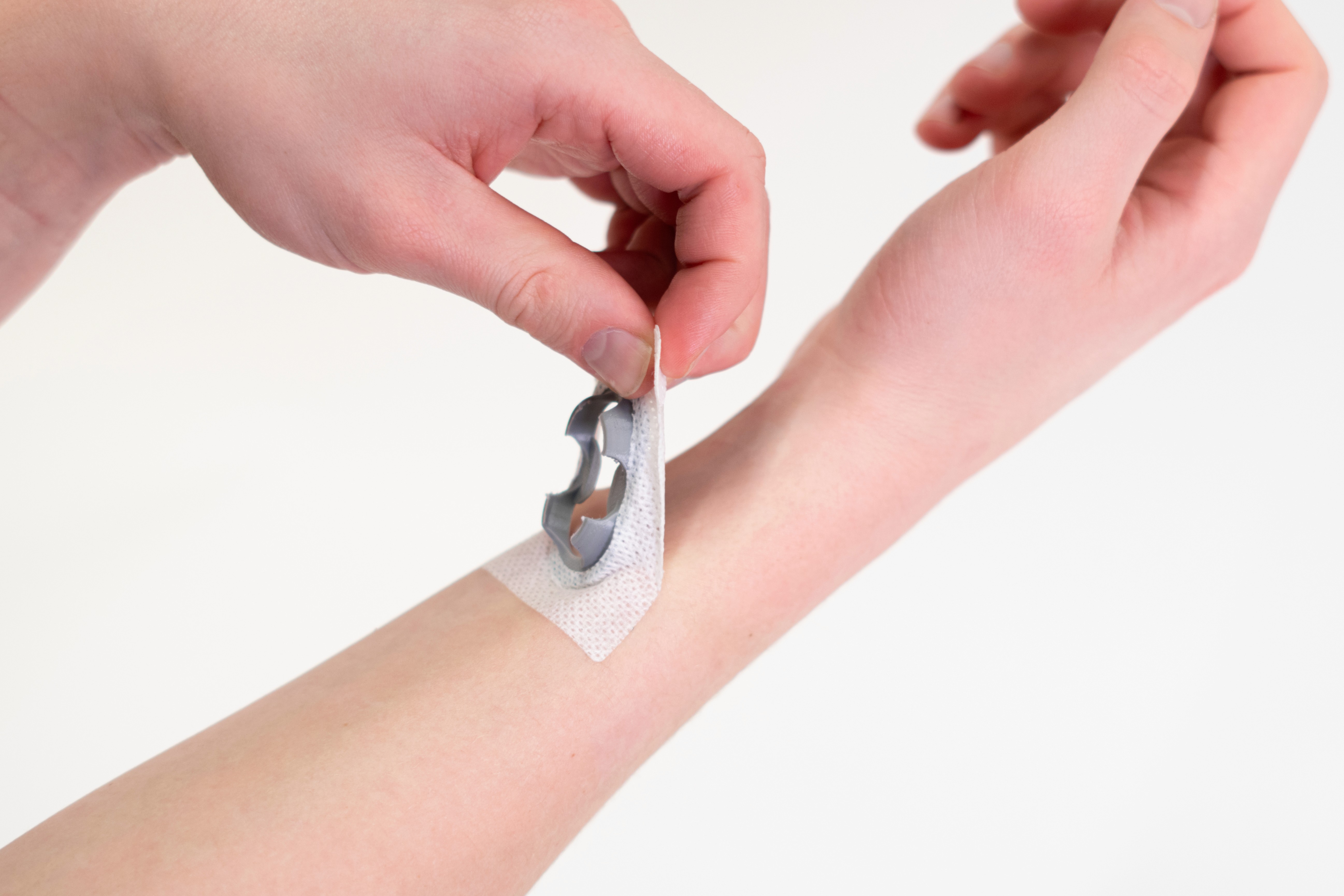 Disposable part being peeled from the wrist