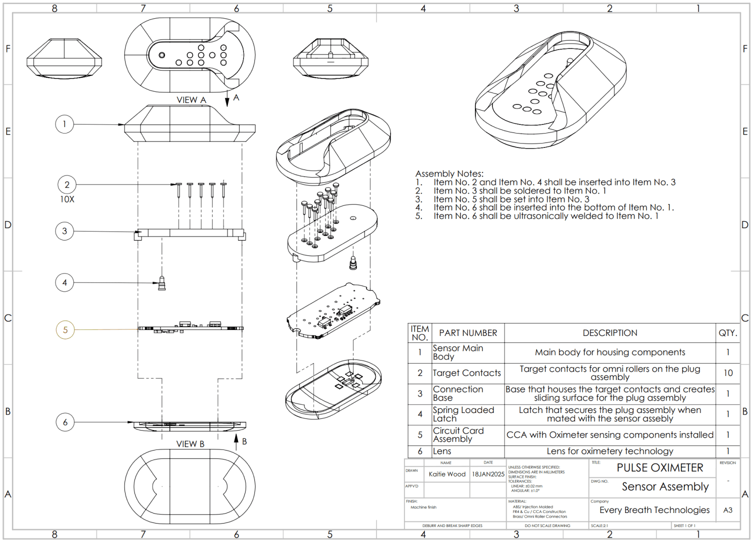 • Sensor Housing: Acrylonitrile Butadiene Styrene (ABS) for toughness and impact resistance.